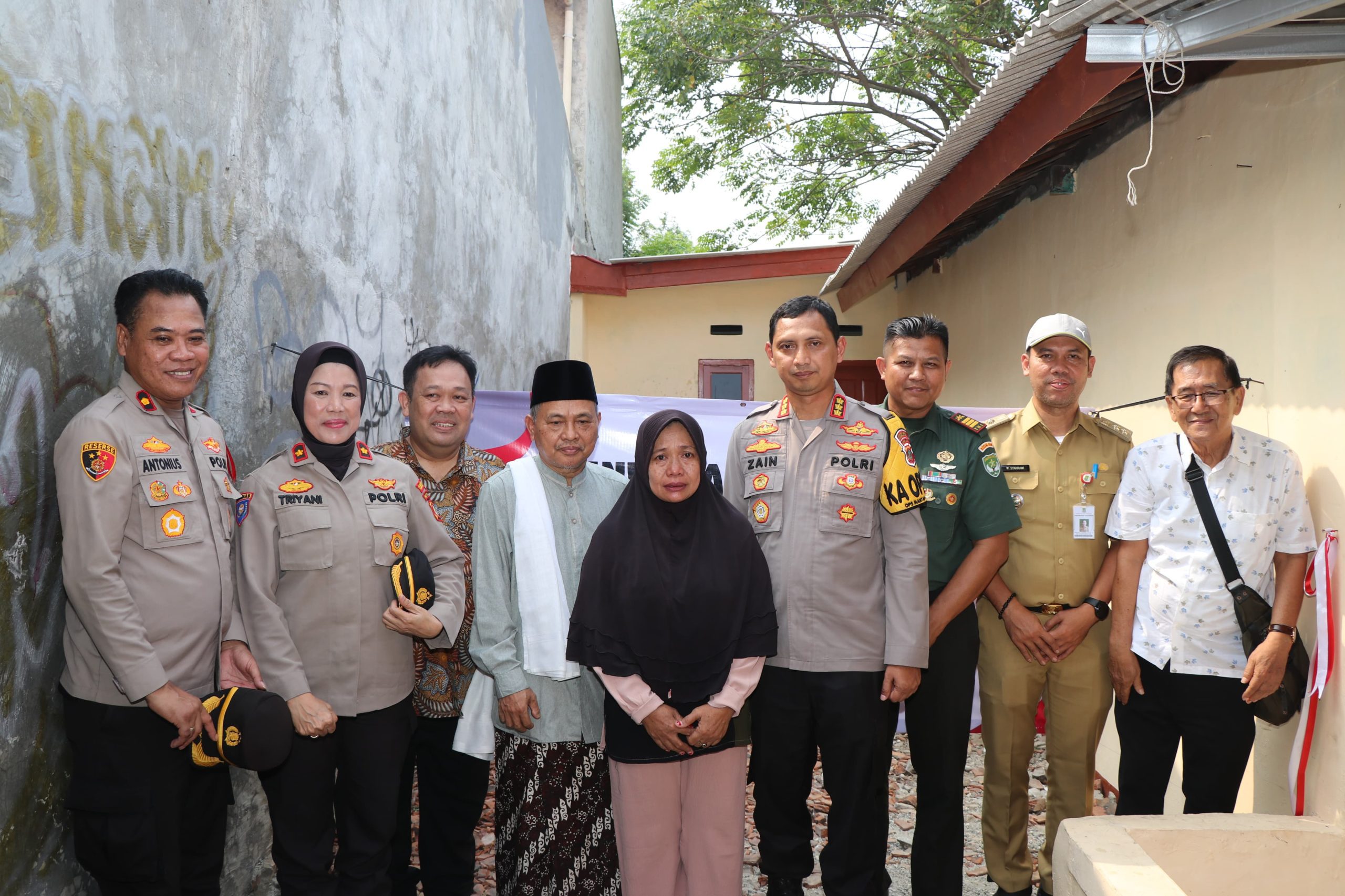 GLOBALBANTEN.COM | Dikerjakan selama 35 hari, sejak peletakan batu pertama pembangunan tanggal 11 Juli 2024, lalu, program bedah rumah Polres Metro Tangerang Kota, Polda Metro Jaya terhadap kediaman (rumah) bapak Rohim (72) warga Kampung Karawaci ilir, Gang Usaha RT 004 RW 003, Kecamatan Karawaci, Kota Tangerang telah rampung dan siap dihuni secara layak.