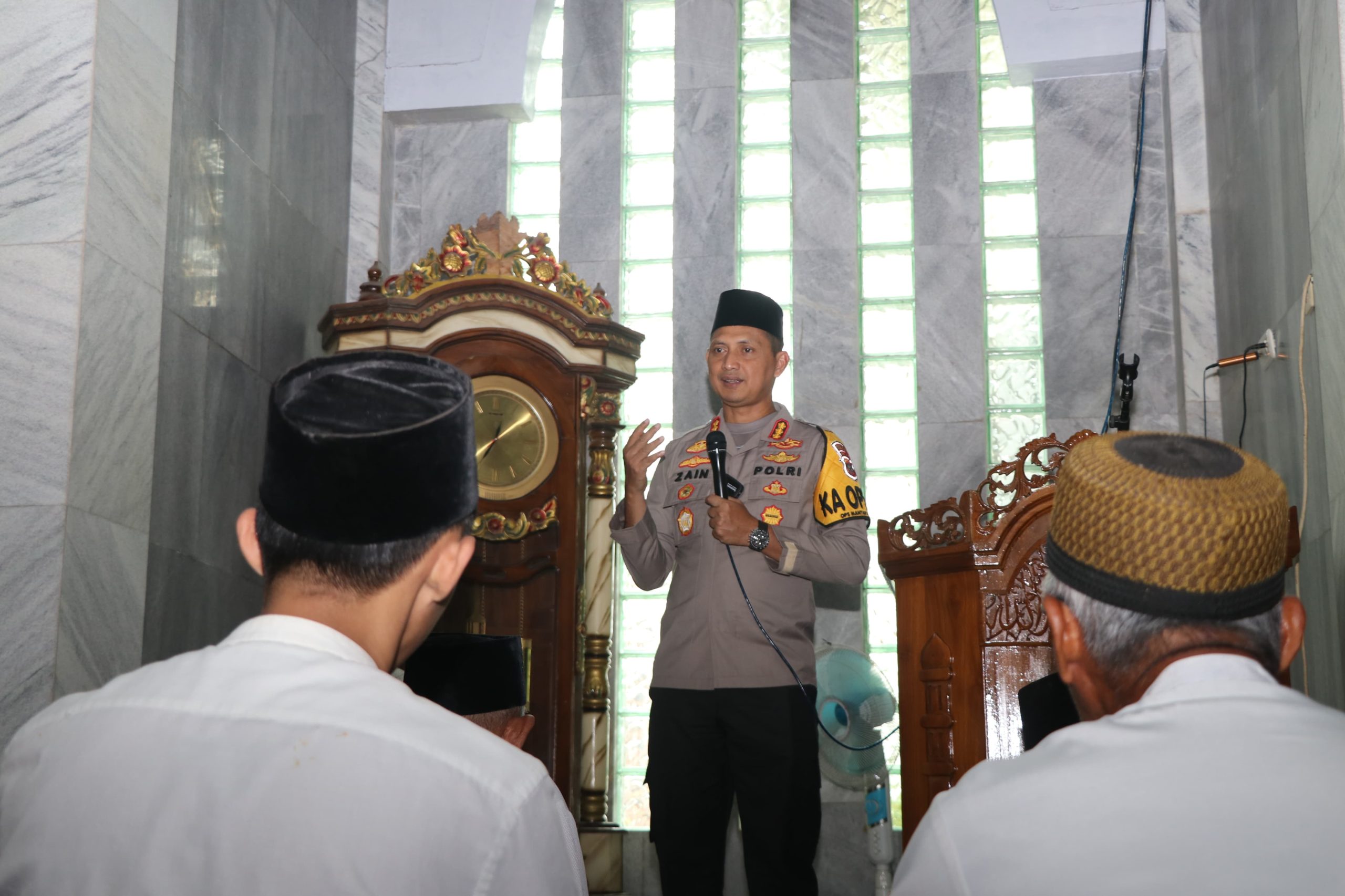 Usai ibadah salat dzuhur, Kapolres berkesempatan melakukan dialog terkait aspirasi masyarakat dalam menjaga keamanan dan kenyamanan lingkungan.