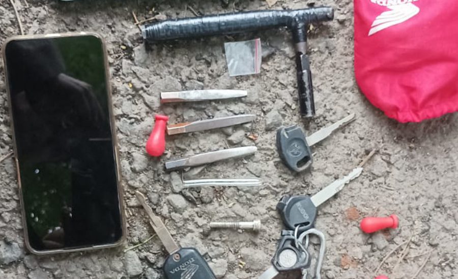 “Petugas dengan sigap langsung mengejar para pelaku, dua orang berhasil kita amankan berikut barang bukti berupa tiga mata kunci T, satu gagang kunci T, empat kunci duplikat yang di buang ke semak-semak, termasuk sepeda motor N-Max tanpa nomer polisi,” terangnya.