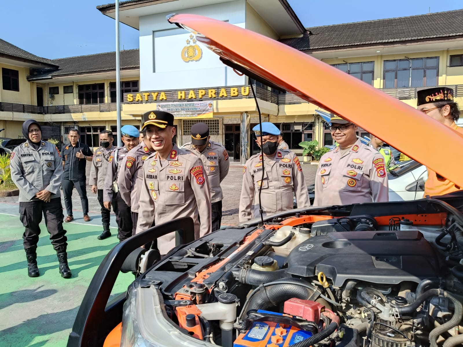 Kegiatan pemeriksaan kendaraan dinas Kapolres Cilegon Polda Banten AKBP Kemas Indra Natanagara di dampingi Waka Polres Cilegon KOMPOL Rifki Seftirian yusuf,kabaglog polres Cilegon AKP Yudi Permana, Kabag Ops Polres Cilegon AKP      Choirul Anam,Kasat samapta polres Cilegon AKP Asep Gundara, Kasat Pamobvit Polres Cilegon AKP H.Batee,kasat lantas polres Cilegon AKP Mulya Sugiharto, Kasihumas Polres Cilegon AKP Sigit Dermawan dan kasipropam Polres Cilegon IPTU M.Jumat.
