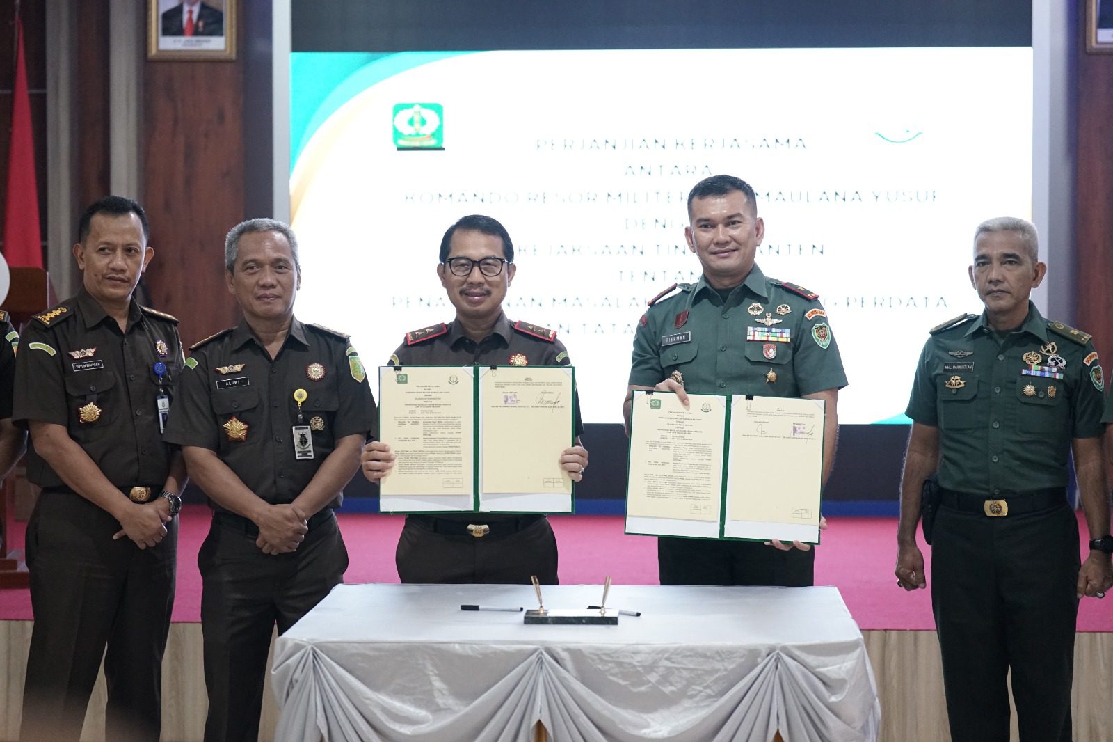 Nota kesepakatan tersebut ditandatangani langsung oleh Kepala Kejaksaan Tinggi Banten Dr. Didik Farkhan Alisyahdi dengan Komandan Korem 064/MY Brigjen TNI Firman Sjafirial Agustus, S.IP., bertempat di Aula Kejaksaan Tinggi Banten.