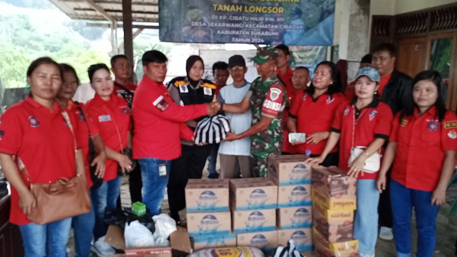 Bantuan tersebut disalurkan ke posko longsor dan di terima oleh Kepala Desa, BPBD, Babinsa , dan babinkamtibmas, serta perangkat Desa serta relawan.