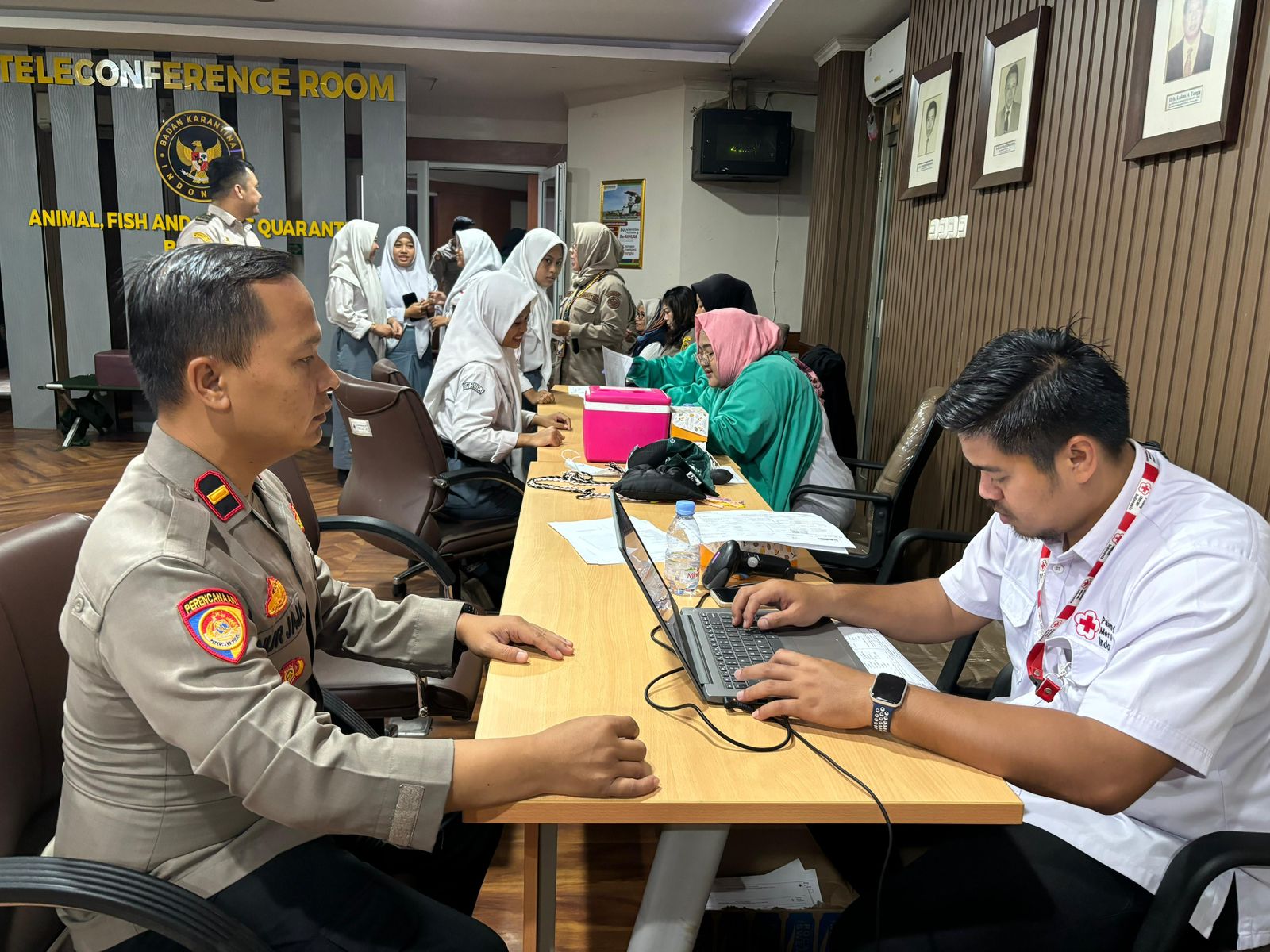 Usut punya usut, kehadiran para personel kepolisian berseragam lengkap tersebut ternyata untuk mendonorkan darahnya di Balai Karantina Hewan, Ikan dan Tumbuhan Banten Satpel Soekarno-Hatta.