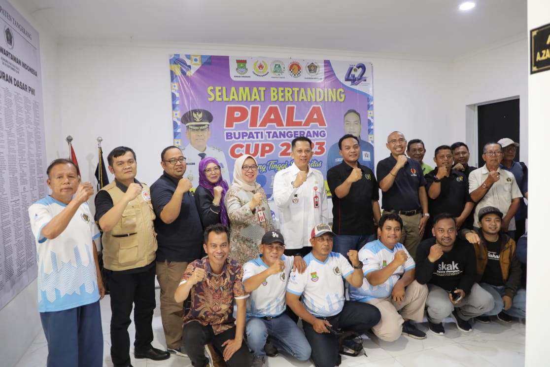 Globalbanten.com l Pj Bupati Tangerang Andi Ony membuka turnamen olahraga antar wartawan se-Tangerang, Bupati Cup 2023 Persatuan Wartawan Indonesia (PWI) Kabupaten Tangerang. Pembukaan kegiatan yang digelar Seksi Wartawan Olahraga (SIWO) PWI Kabupaten Tangerang tersebut berlangsung di Gedung PWI Kabupaten Tangerang di Cikokol. Kamis, (28/12/23)