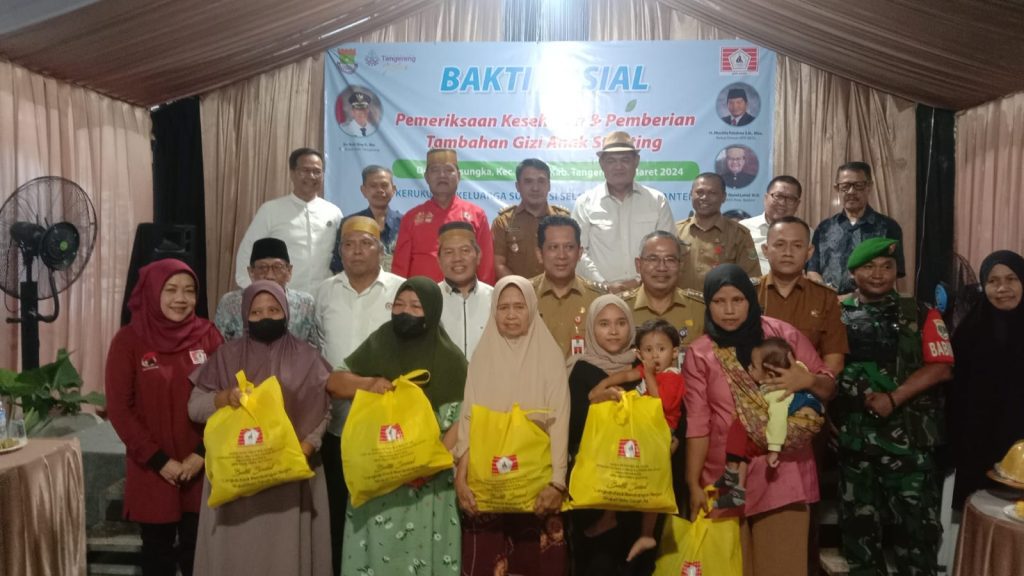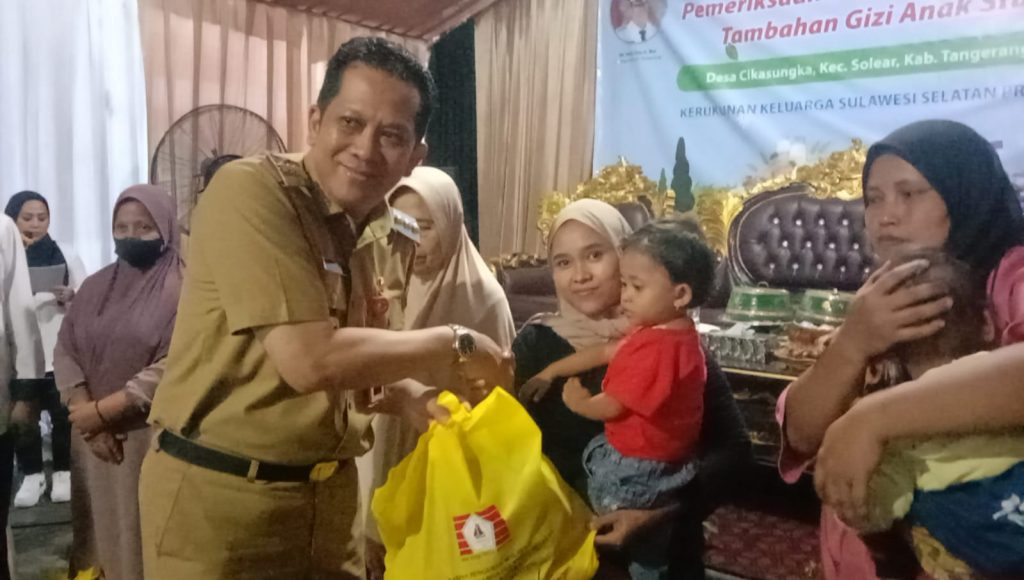 Globalbangen.com | Pj Bupati Tangerang Andy Ony Prihartono menghadiri acara Bakti Sosial (Baksos) Pemeriksaan Kesehatan dan Pemberian Tambahan Gizi Anak Stunting di Desa Cikasungka Kecamatan Solear Kabupaten Tangerang bersama dengan Keluarga Kerukunan Sulawesi Selatan (KKSS), Selasa (5/3/2024).