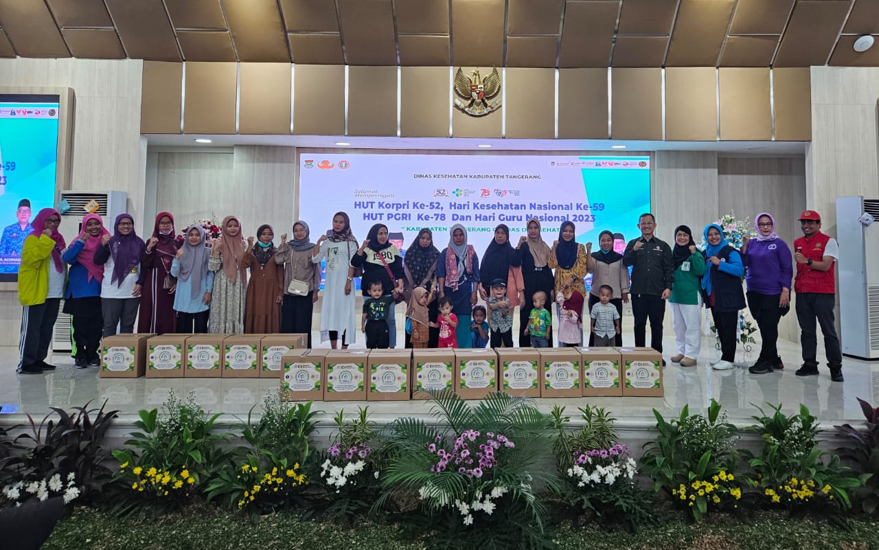 Dr. Mohamad Rifki MS, SpB, MARS, Ketua IDI Cabang Kabupaten Tangerang, sekaligus Koordinator PROKES menyampaikan Paket PMT yg diberikan sebanyak 284 paket, sesuai dengan data yang diberikan oleh Dinas Kesehatan Kabupaten Tangerang. Pemberian paket secara simbolis dilakukan saat Puncak Acara Menyambut HKN ke-59, HUT KORPRI ke-52, HUT PGRI ke-78 yang dibuka oleh Bapak Sekretaris Daerah Kabupaten Tangerang, mewakili Bapak PJ Bupati Tangerang.