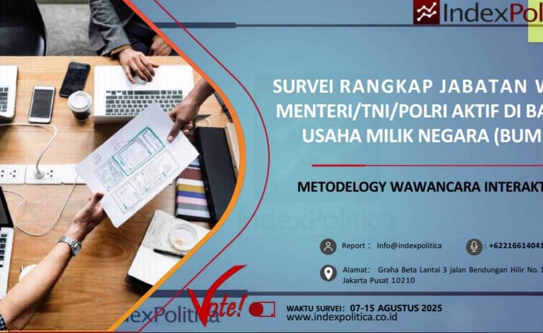 GLOBALBANTEN.COM | JAKARTA – Lembaga survei Index Politica merilis hasil survei nasional terbaru yang menyoroti tingkat kepercayaan publik terhadap Presiden Prabowo Subianto, kinerja Kabinet Merah Putih, serta fenomena rangkap jabatan pejabat negara di Badan Usaha Milik Negara (BUMN).