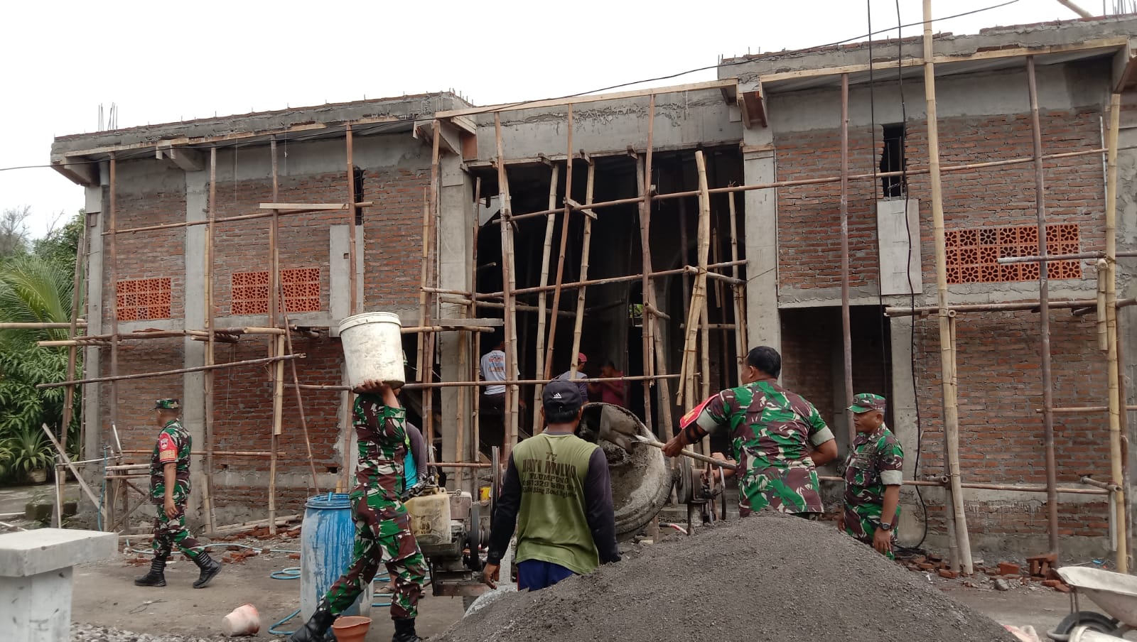 Danramil Didampingi Babinsa Bersama Warga Gotong Royong Bangun Masjid